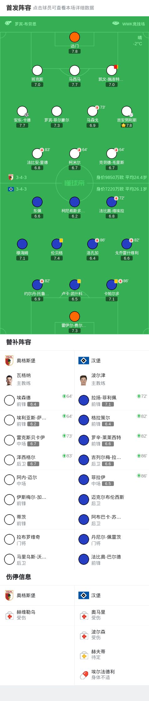 第76分鐘,奧格斯堡球員吉安努利斯助攻安東-卡德打入一球。