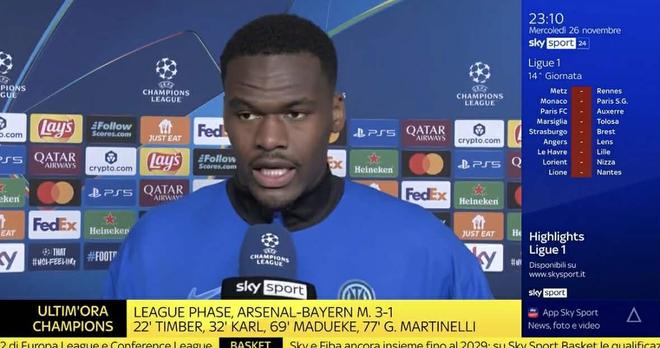 北京時間11月27日,在歐冠聯(lián)賽階段第5輪的比賽中,國際米蘭客場1-2被馬德里競技絕殺,遭遇本賽季歐冠首敗和各項賽事兩連敗,賽后此戰(zhàn)首發(fā)出場的博尼接受了意大利天空體育的采訪。